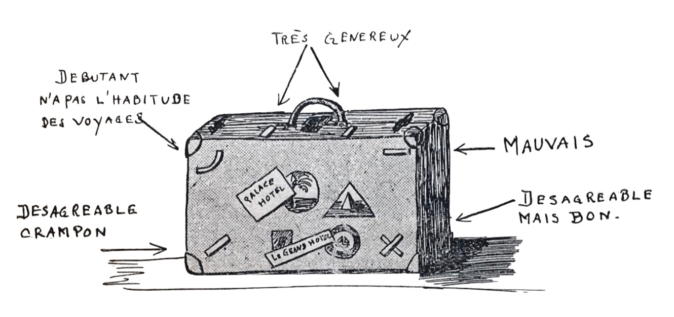 These labels were stuck on trunks in 1900 to promote a hotel. They soon became a very important code between the different bellmen, who according to their placement on the trunks, determined the generosity of the customer.