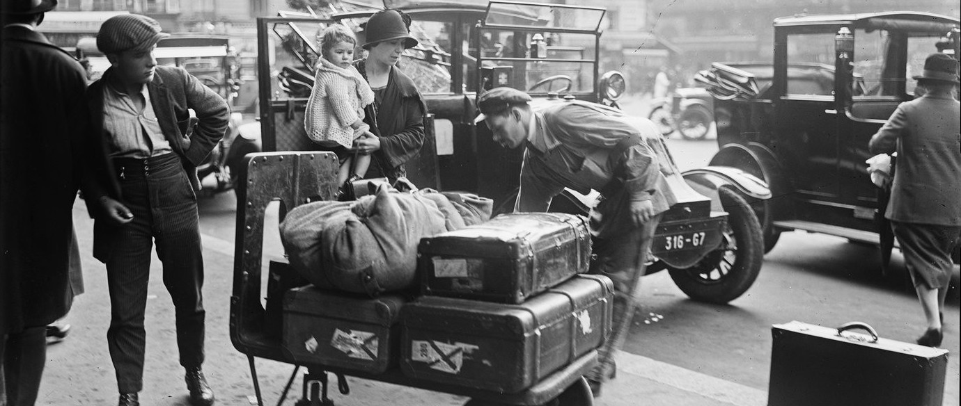 Que trouve-t-on sur les vieux bagages? « On y retrouve l’empreinte des moyens de transport employés, des voyages réalisés, dés séjours effectués, tout cela marqué en vieux papiers, en étiquettes :