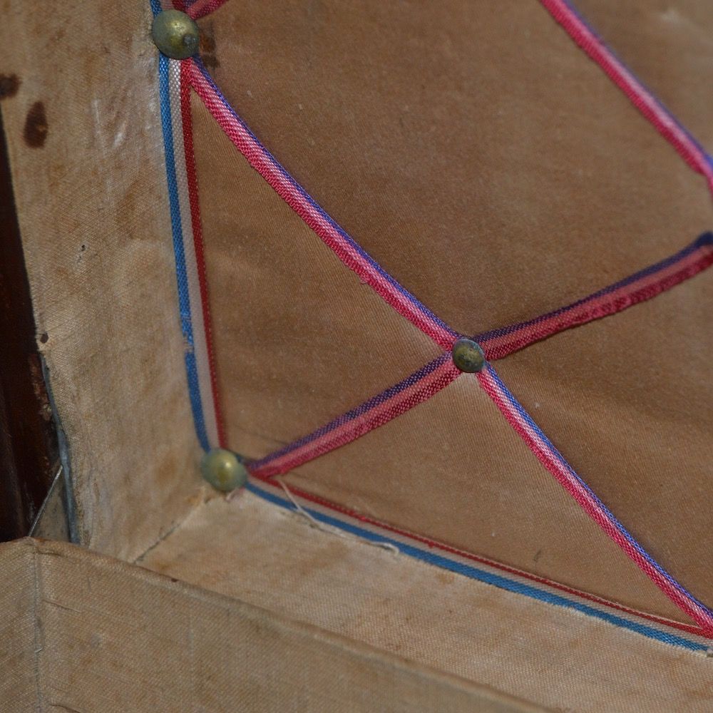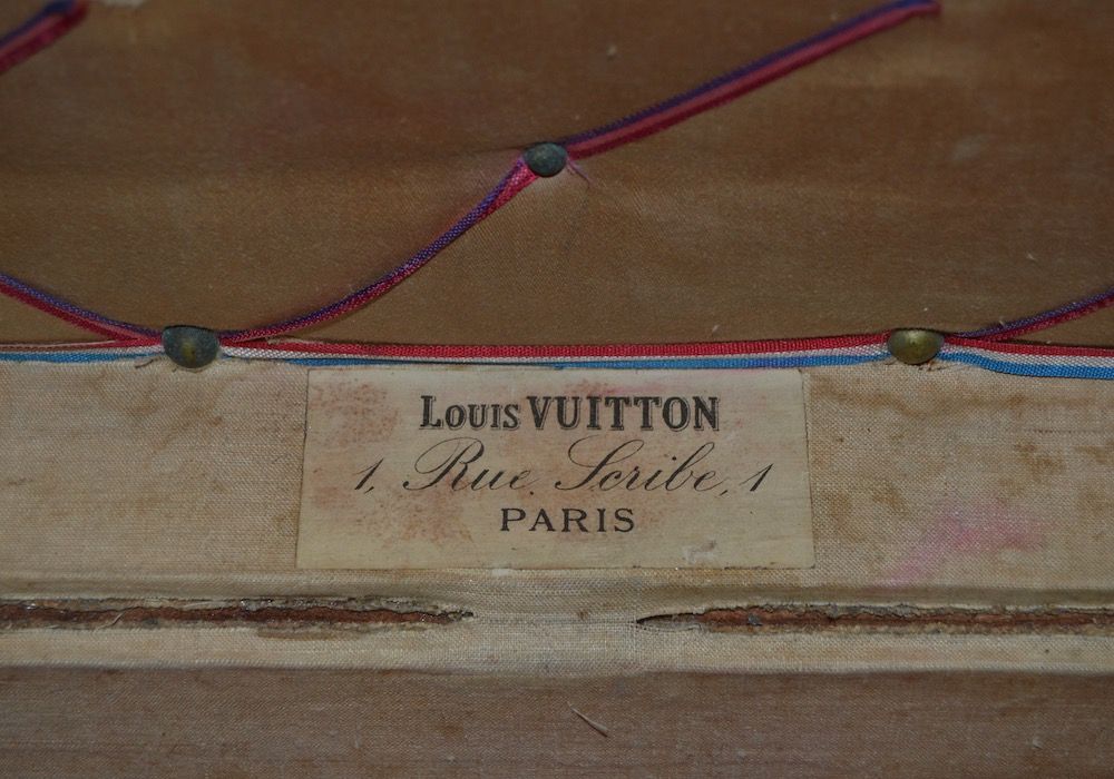 The interior of the trunk is original, with a part of the padding that we have managed to preserve. We notice a canvas frame, as well as straps for several hats (male hat). The year of 1883 is engraved on the buckles, and the serial number of the trunk is written in the bottom of the tank + under the frame. There is also one of the first label of the house Louis Vuitton, with the address Rue Scribe.