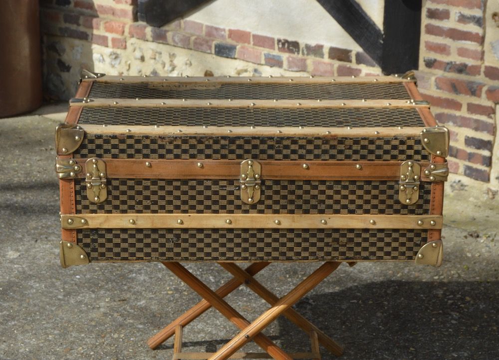 These trunks disappeared from Louis Vuitton or Goyard sales catalogs when the airplane supplanted the liners in the immediate post-war period. For lack of traveling today with these cabin trunks, their format is ideal to make a coffee table. Often protected by a glass, it is the assurance of having an unusual table, full of history and symbol of an art of living at the beginning of the 20th century.