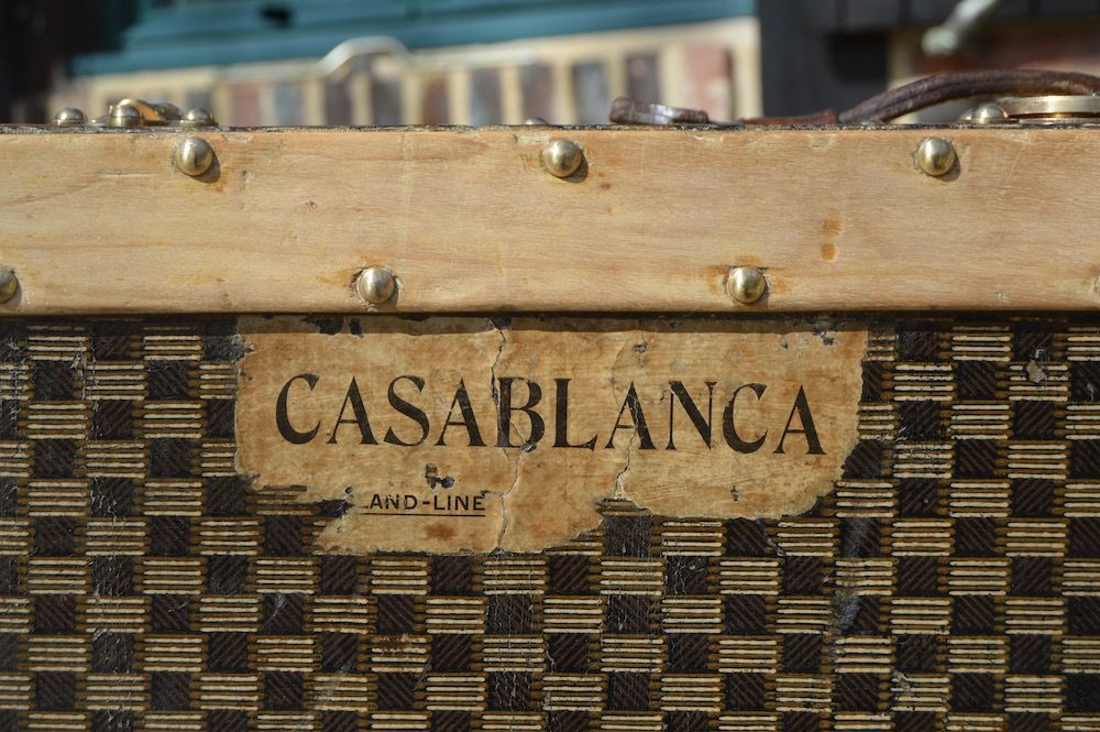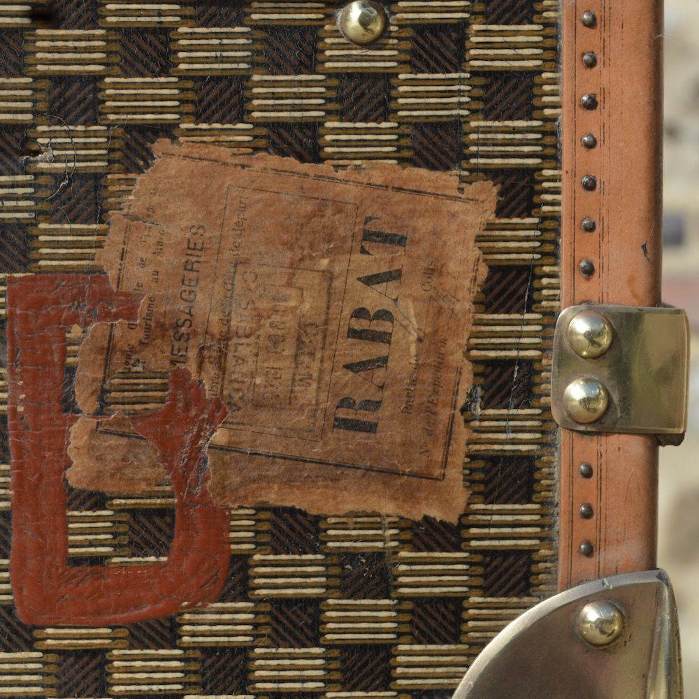We notice several interesting shipping labels stuck on this trunk, including a label indicating a trip to Casablanca on the top of the trunk or a label of Rabat in Morocco on the side.