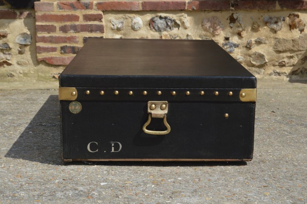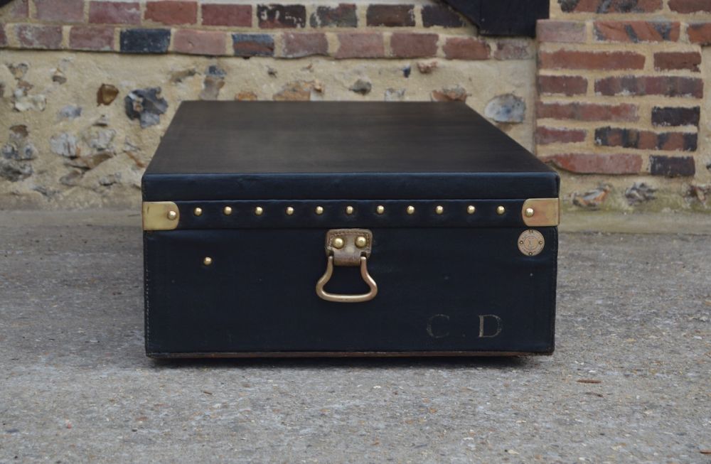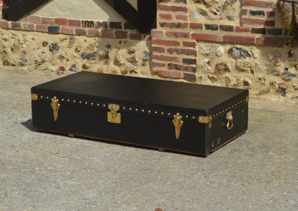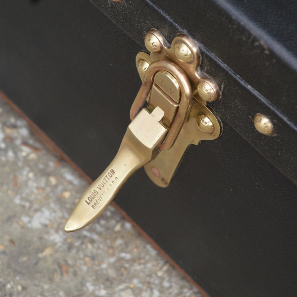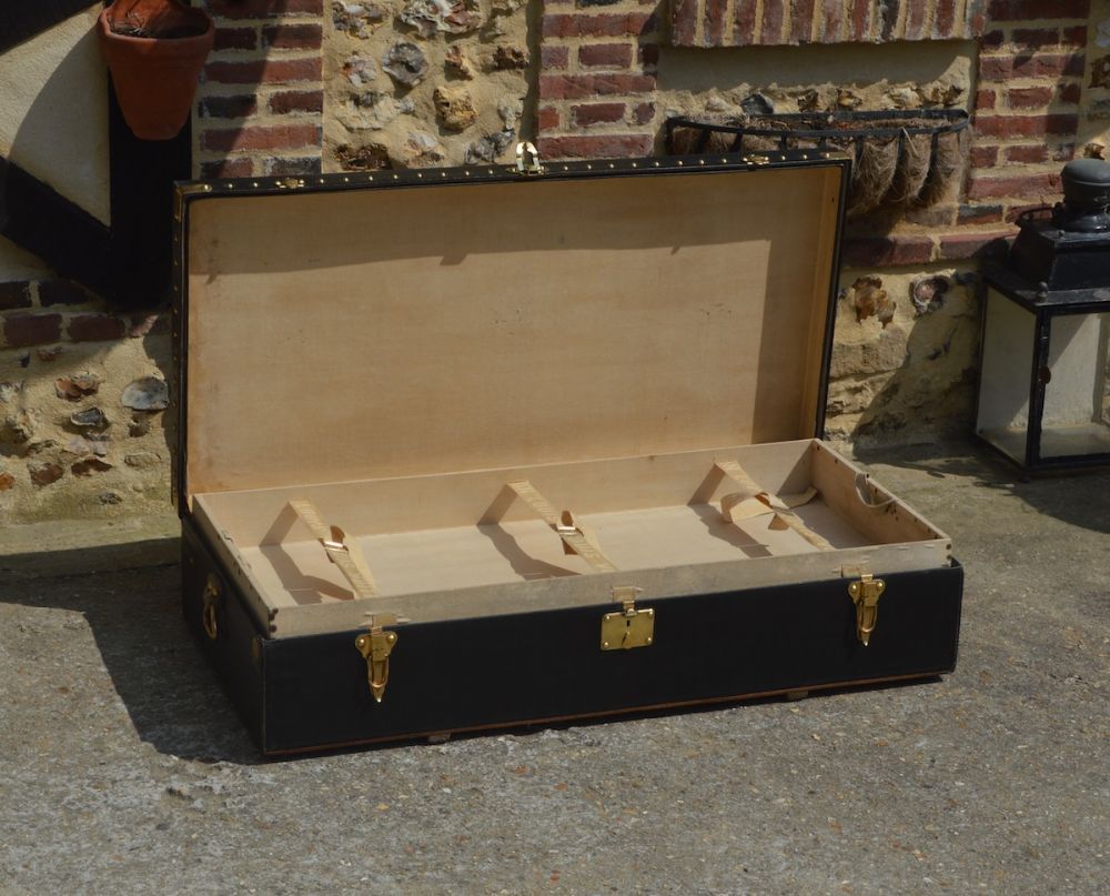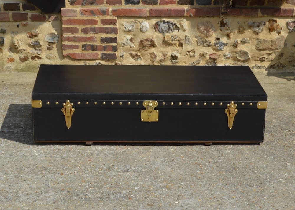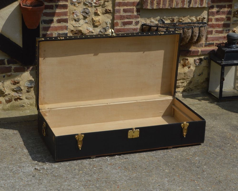 Louis Vuitton car trunk "de pavillon" from 1906, covered with black waterproof vuittonite canvas.