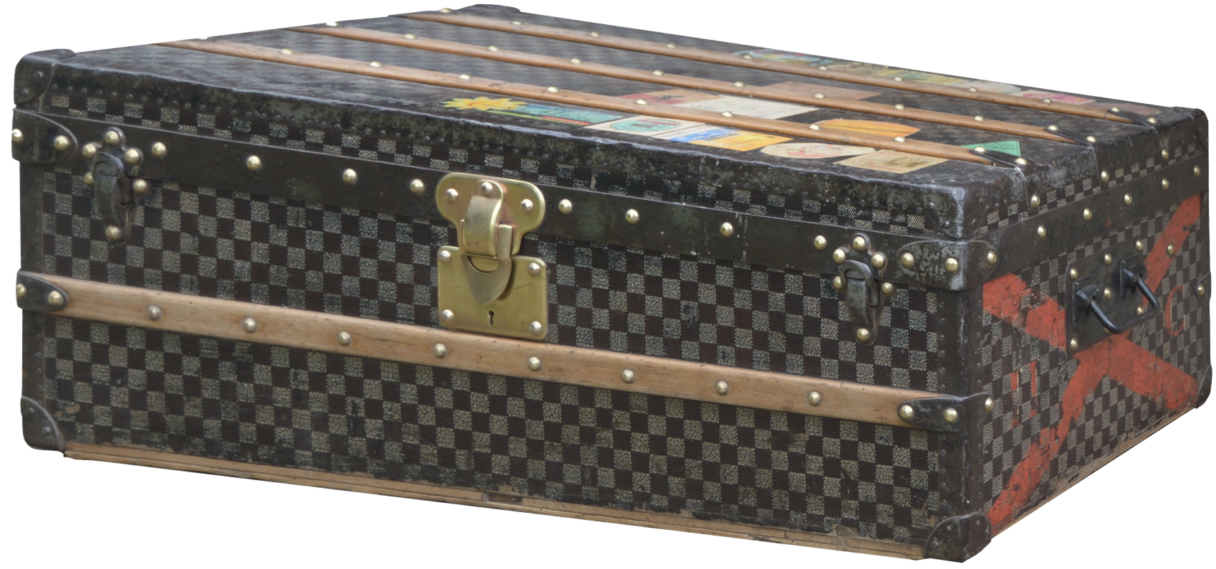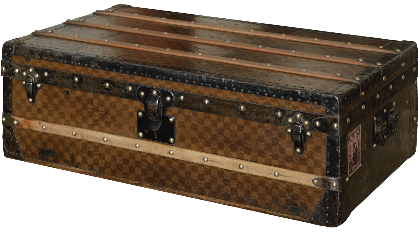 Later we find checkered models, with two available colors (beige and brown) and two finishes (leather and Moorish). From then on, the luxury trunks began to take place in the workshops of Asnières. Leather borders were added to the different trunks and brass parts progressively replaced the metal parts.