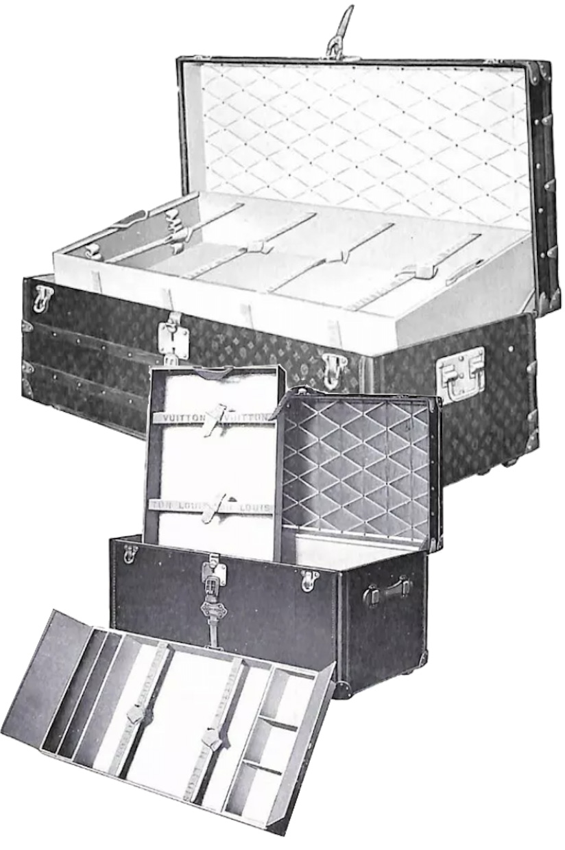 Thanks to their ideal proportions for all types of travel, Louis Vuitton's Courier trunks were particularly popular with men of the time. Women mainly used larger, taller trunks.