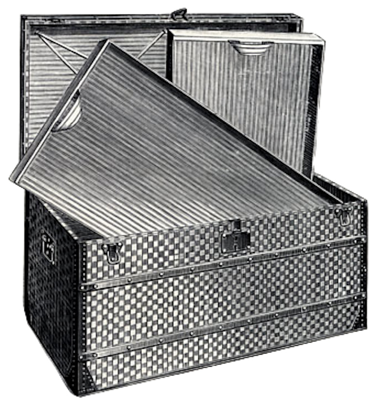 The Courier trunks were among the most requested models of the time. All the coverings were available for this luggage: striped canvas, checkerboard, monogrammed, vuittonite but also in zinc or entirely sewn in leather. There were also moresque (metallic), lozine and leather finishes. This is probably the most produced model by Louis Vuitton and undoubtedly the most emblematic of the hous