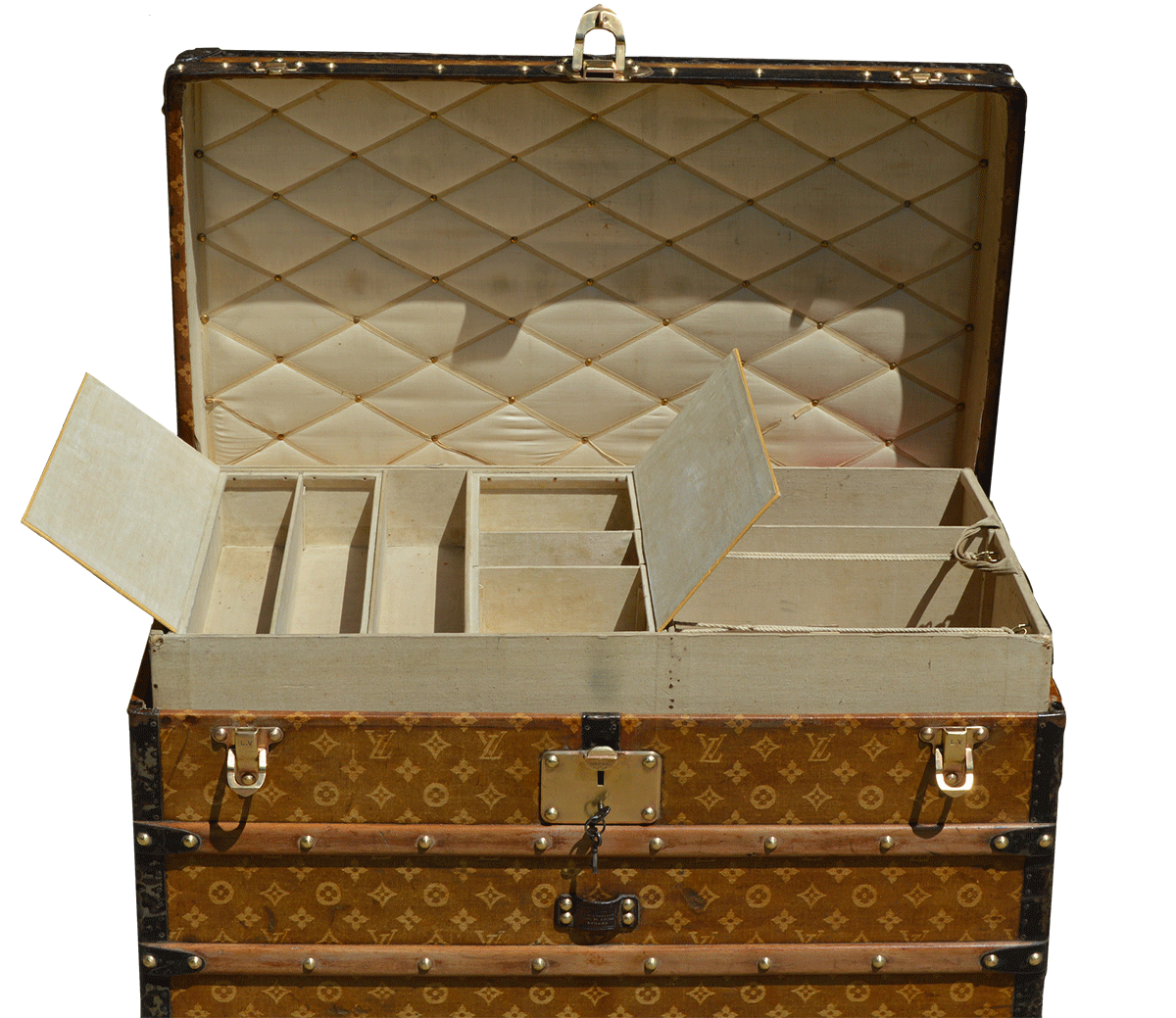 THE INTERIOR OF A LOUIS VUITTON COURRIER TRUNK