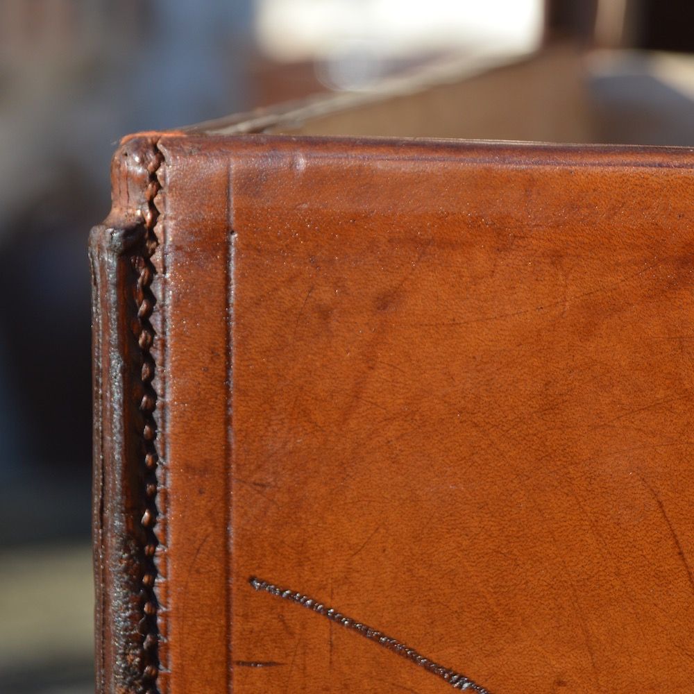 The trunk is in very good condition for its age, with a few water spots on the exterior and interior lining. Very nice patina of the leather.