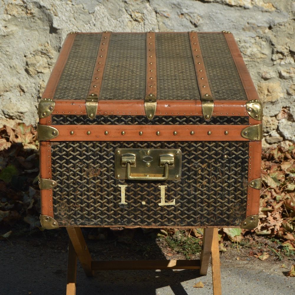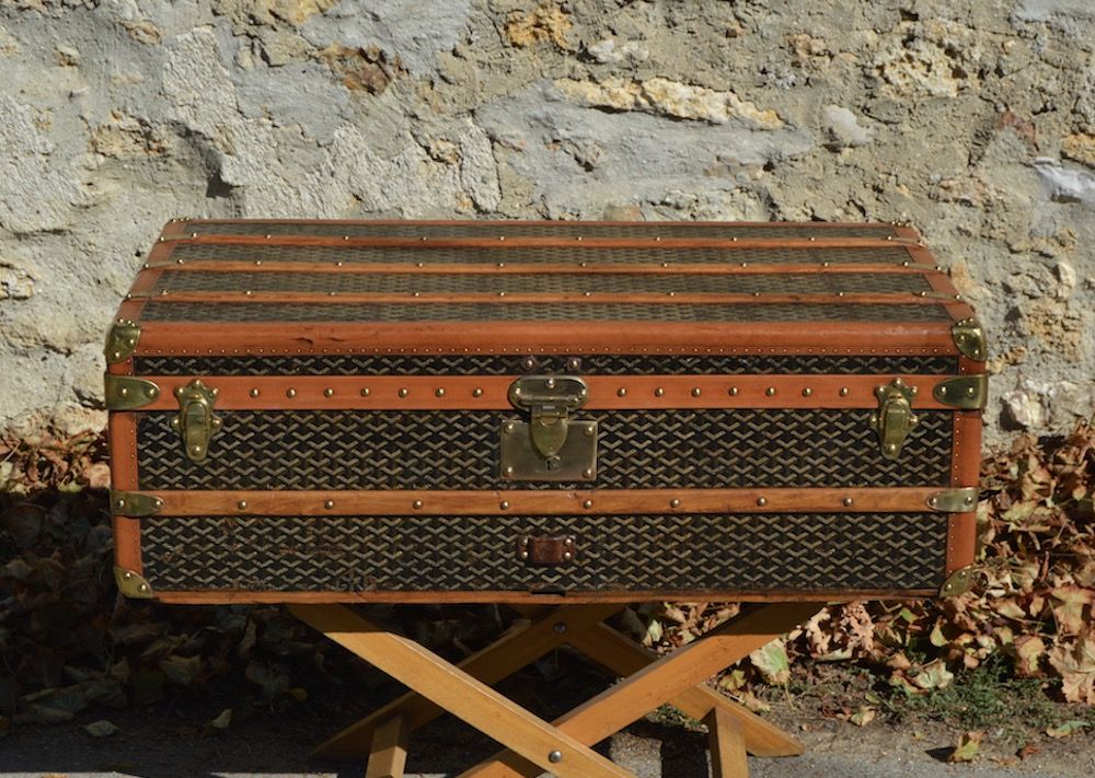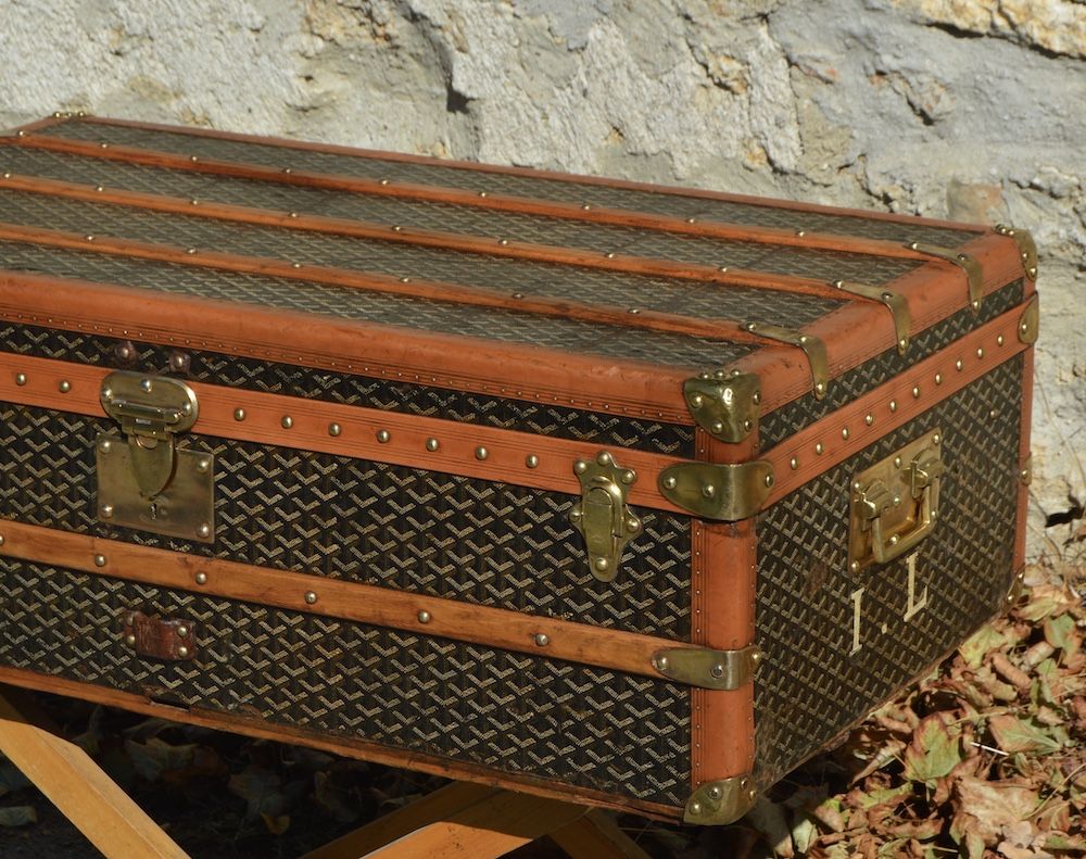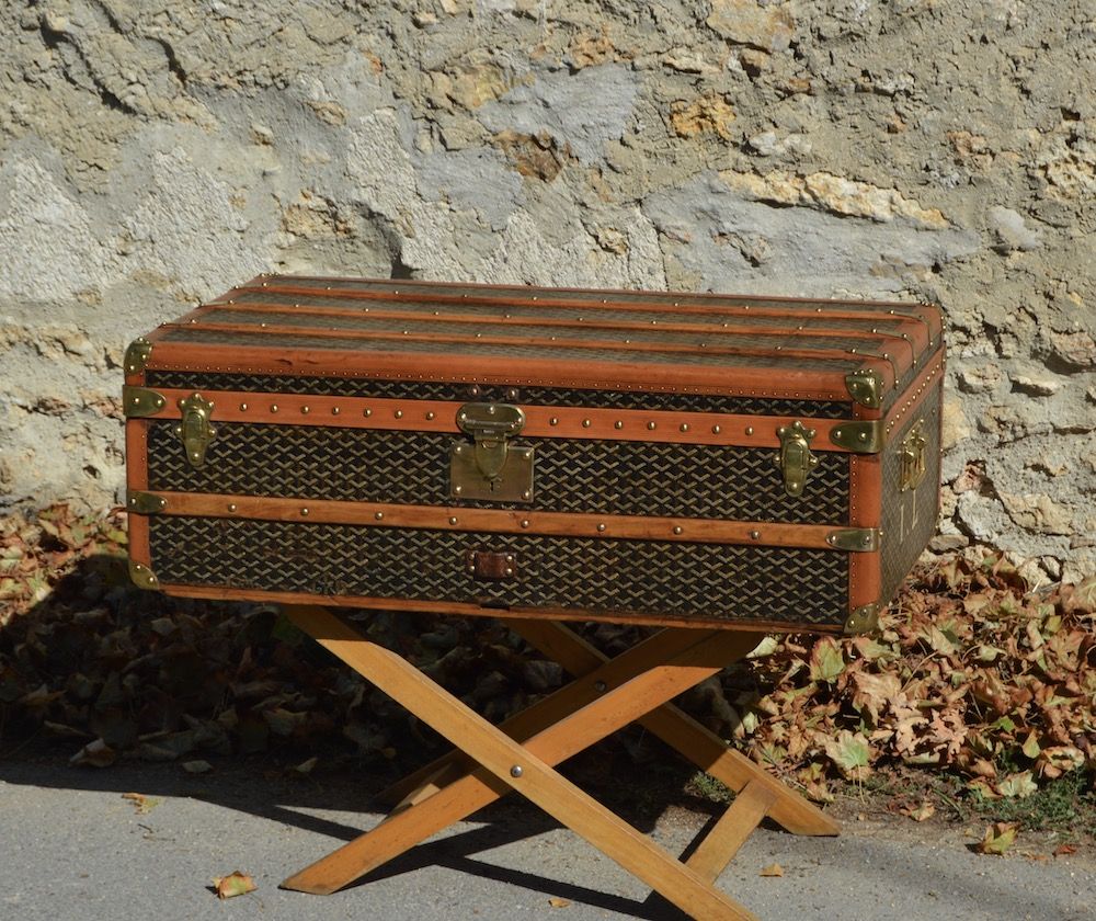 These trunks disappeared from Louis Vuitton or Goyard sales catalogs when the airplane supplanted the liners in the immediate post-war period. For lack of traveling today with these cabin trunks, their format is ideal to make a coffee table. Often protected by a glass, it is the assurance of having an unusual table, full of history and symbol of an art of living at the beginning of the 20th century.