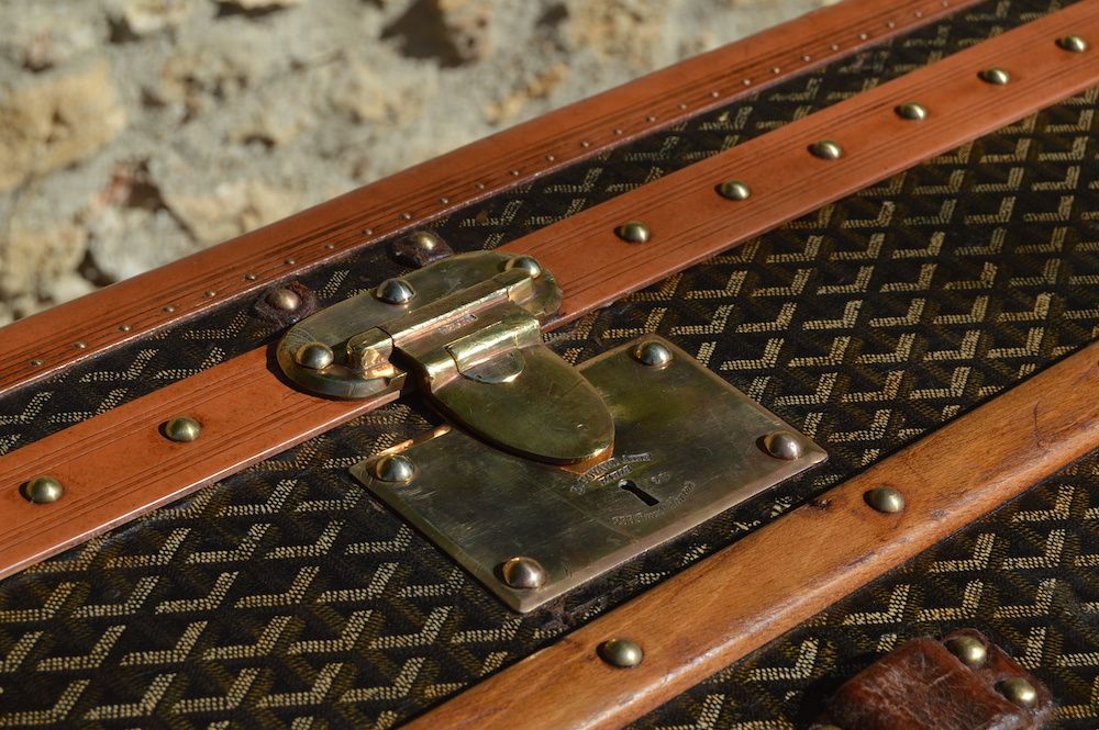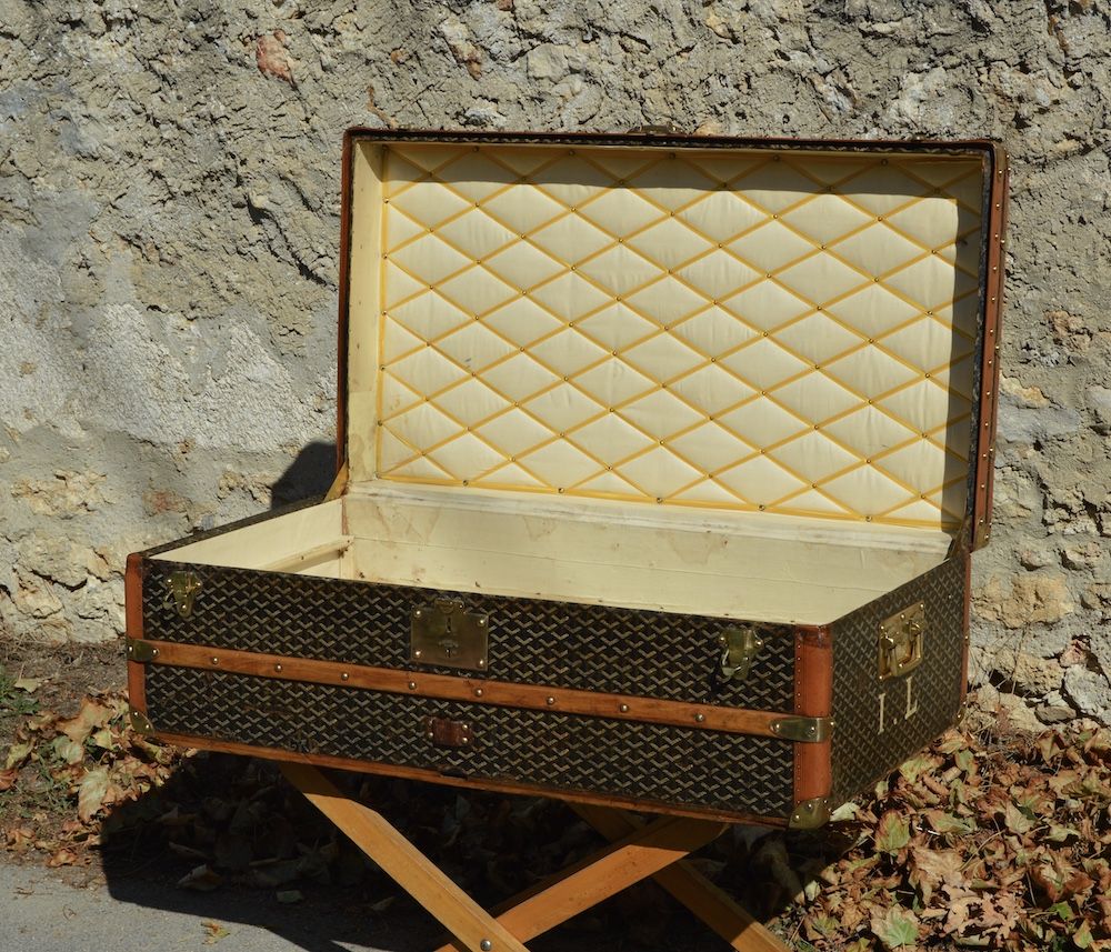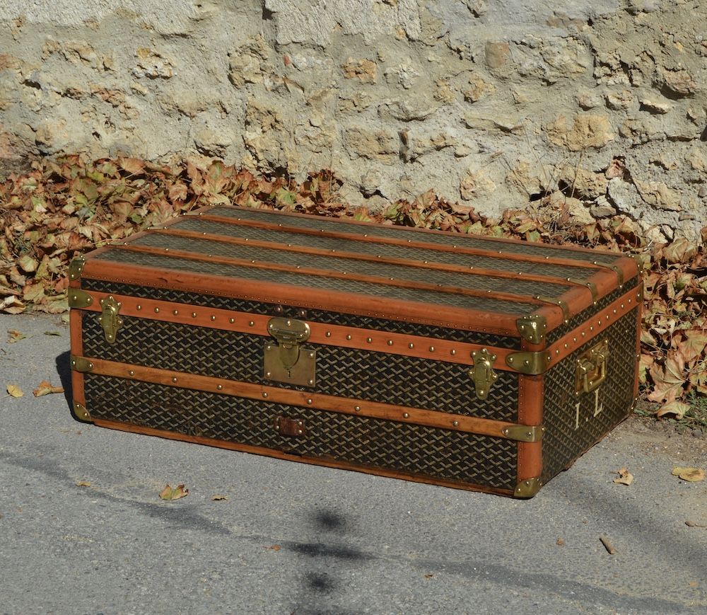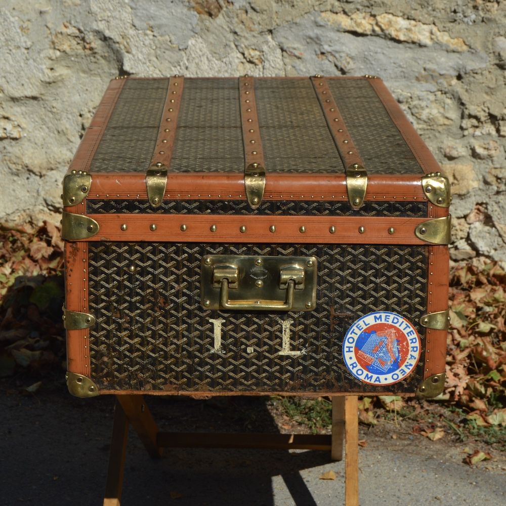 These trunks disappeared from Louis Vuitton or Goyard sales catalogs when the airplane supplanted the liners in the immediate post-war period. For lack of traveling today with these cabin trunks, their format is ideal to make a coffee table. Often protected by a glass, it is the assurance of having an unusual table, full of history and symbol of an art of living at the beginning of the 20th century.