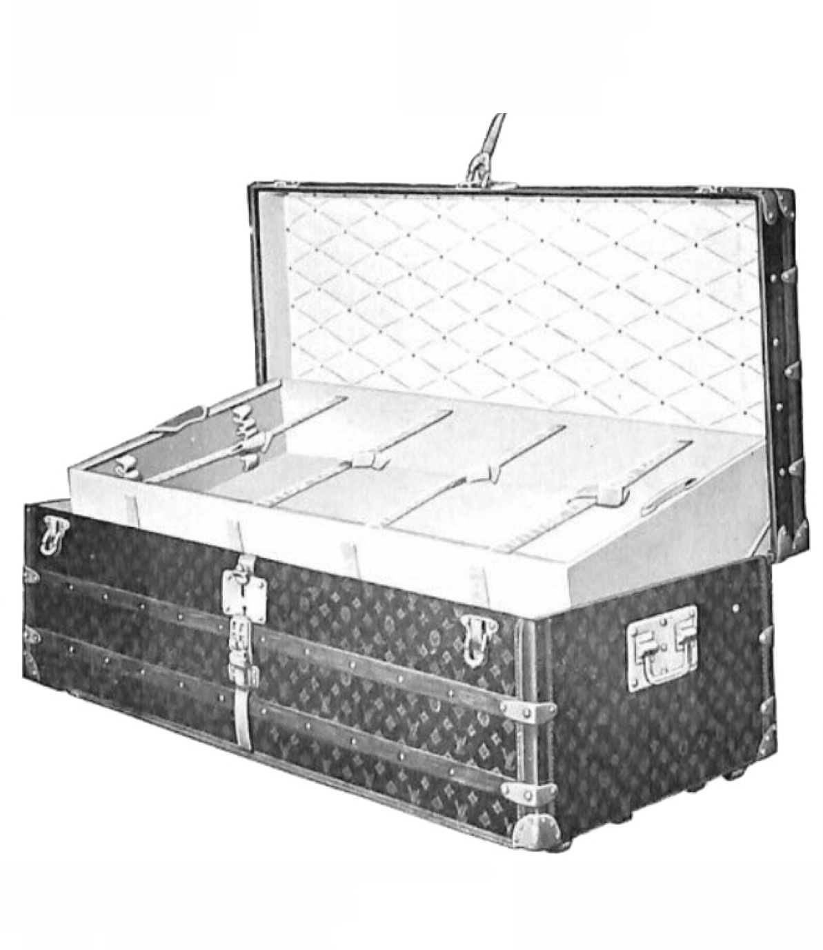 Special LOUIS VUITTON trunk to store long dresses during a travel. A frame and fasteners in the bottom of the trunk are designed to make packing easy.