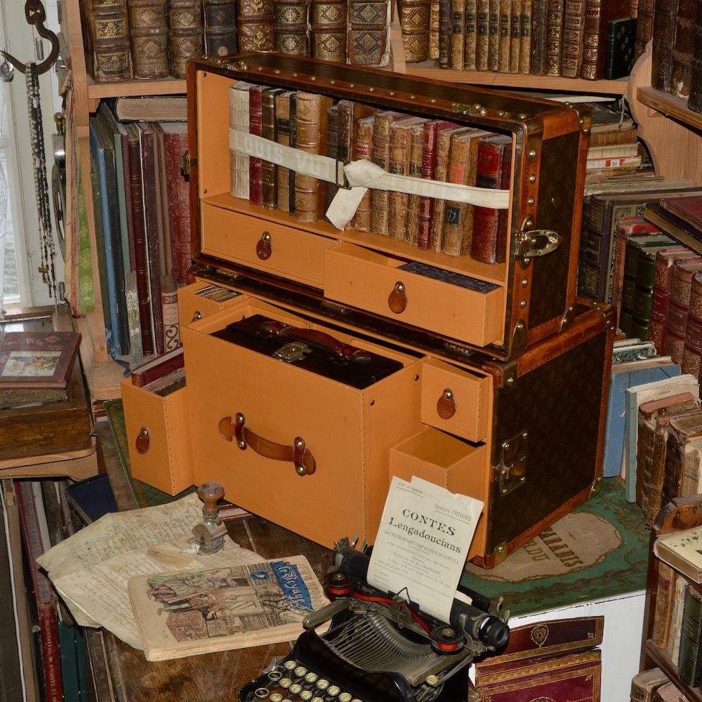 Exceptional and rare Louis Vuitton library trunk from 1933, also called "Hemingway model" in reference to the author Ernest Hemingway who used this type of luggage.