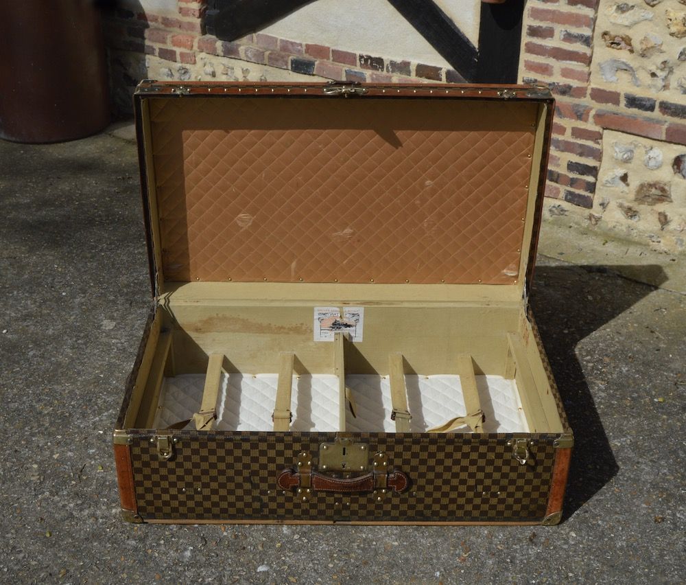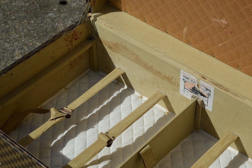 The interior is in very nice condition, with the original manufacturer's label MOYNAT, as well as canvas bindings to hold the clothes in place.