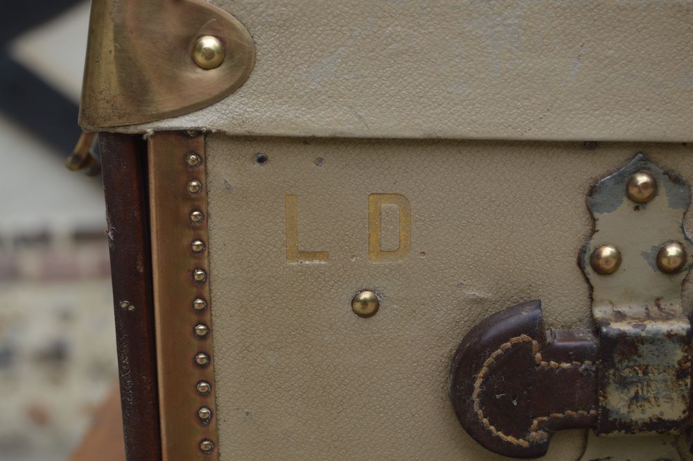 We find the initials LD on each side, as well as handles in leather piqure saddler of origin. The three clasps on the front are signed Moynat.