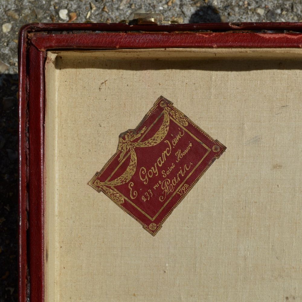 The interior is fitted with a linen canvas with the manufacturer's label stuck in the hood. The name of the trunk-maker E. Goyard Ainée and the emblematic address of the house, 233 rue St Honorée, can be found there.
