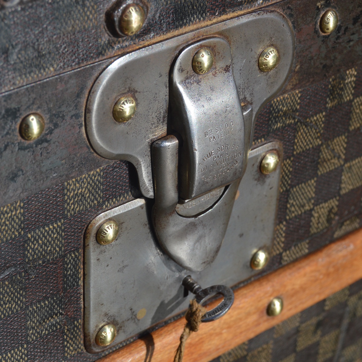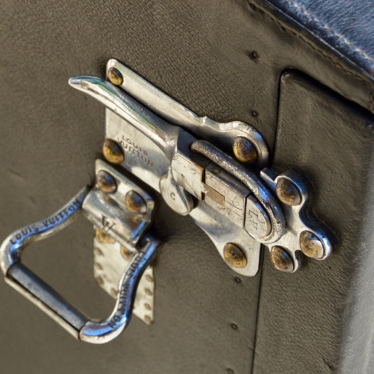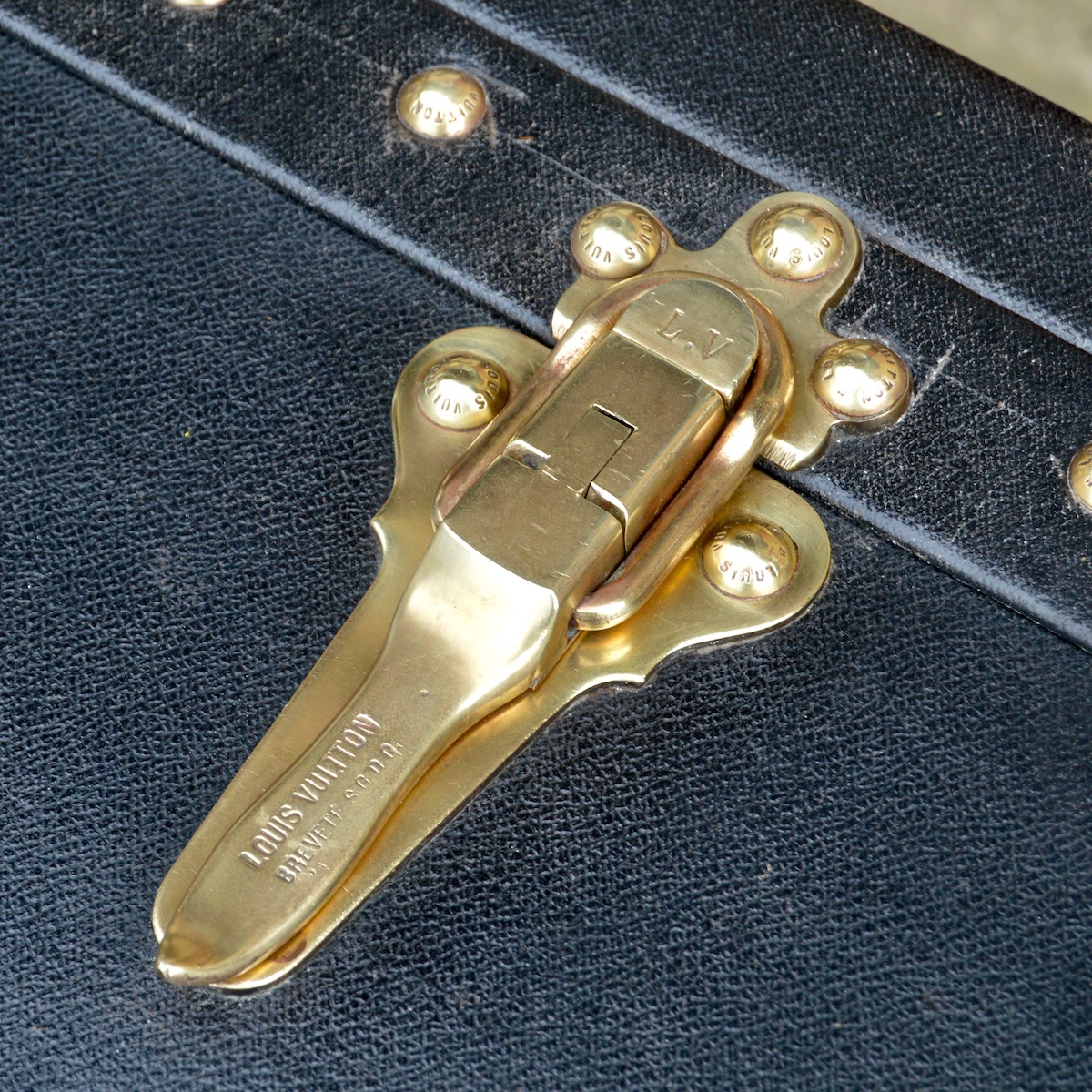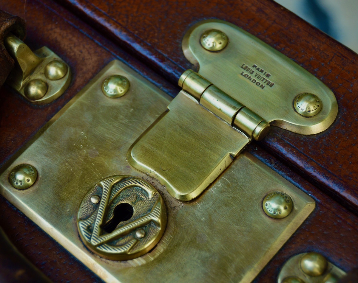 The locks used on trunks today are all shaped like the iconic 1905 V-lock. The only difference is that the Louis Vuitton addresses on the head of the lock were replaced by the brand logo in the 1940s.