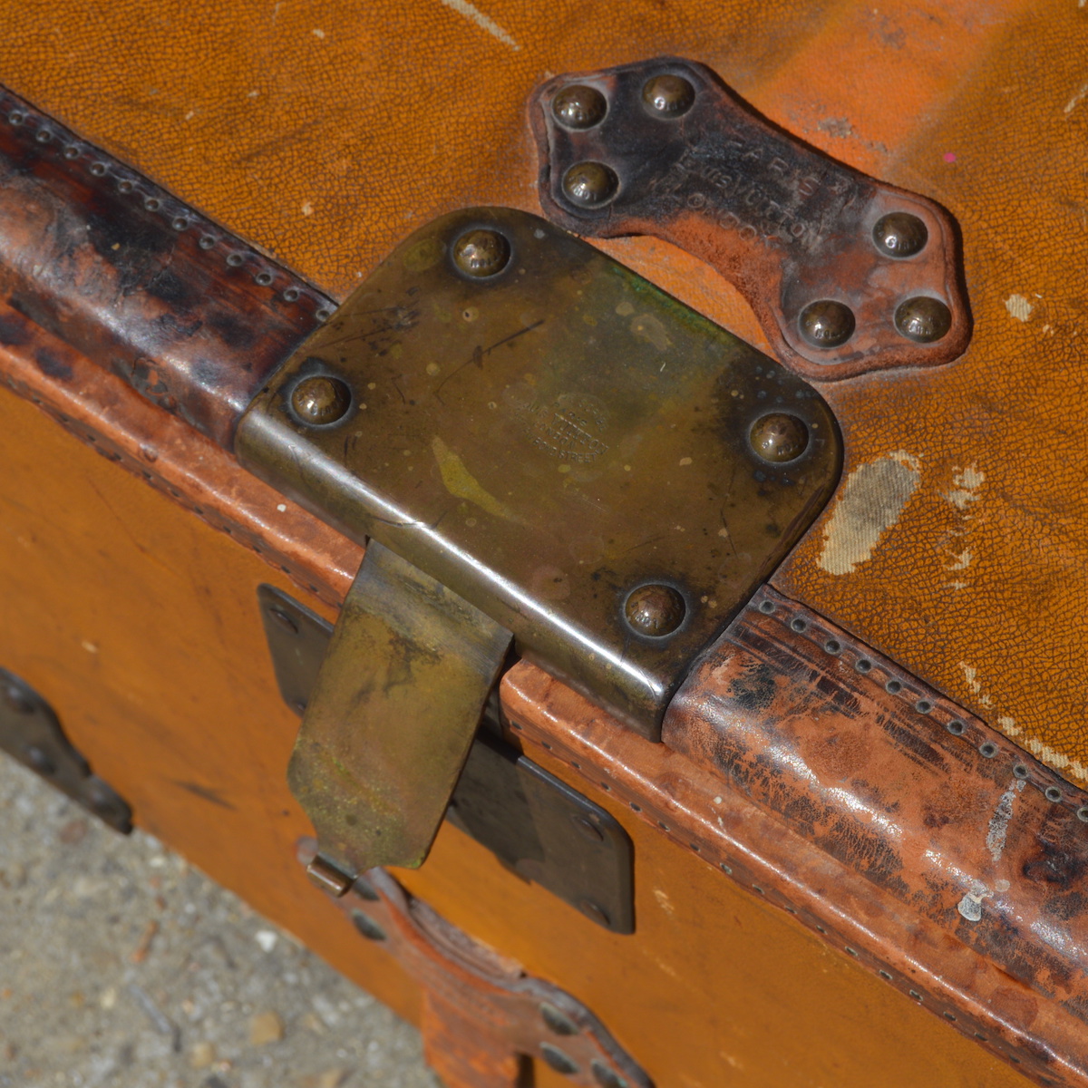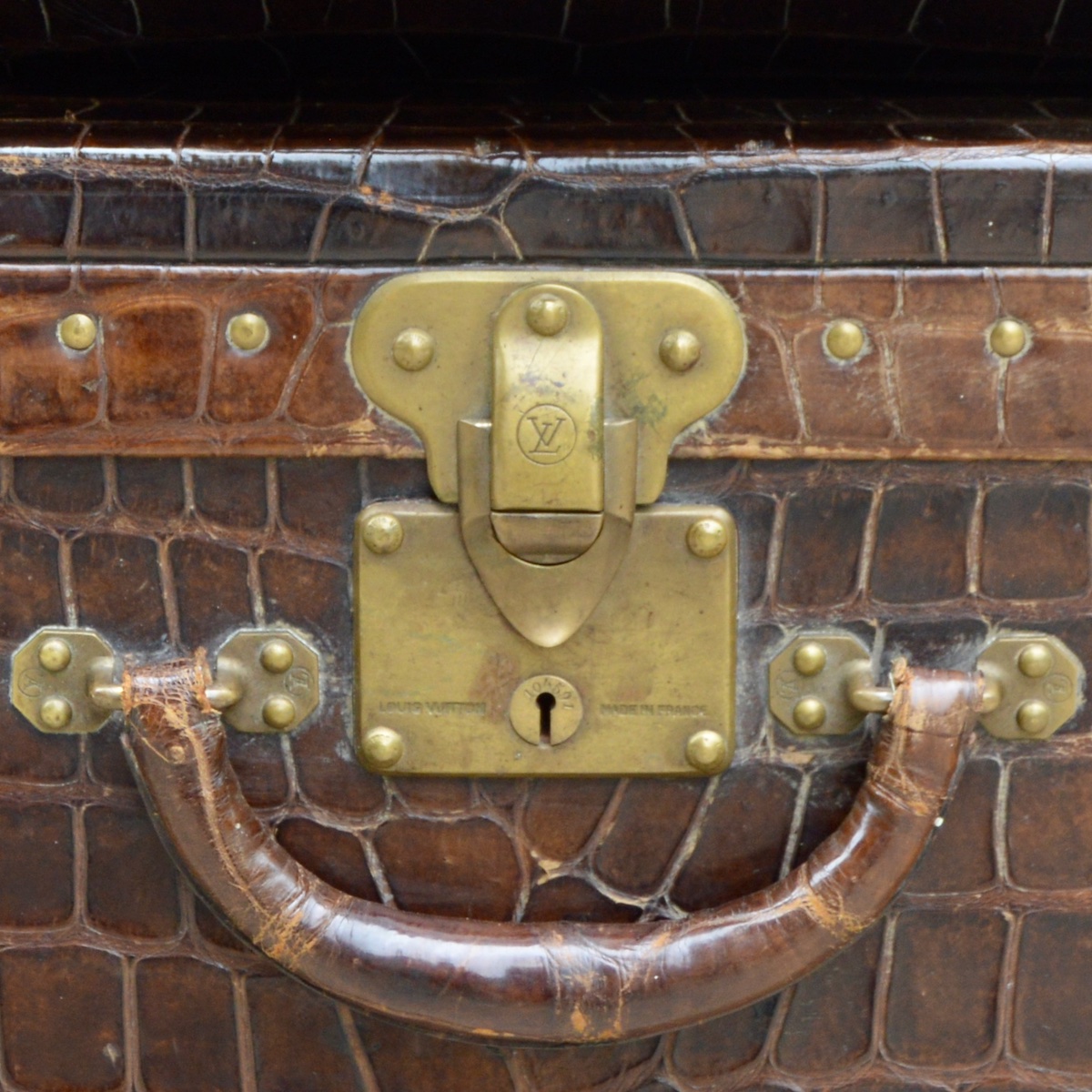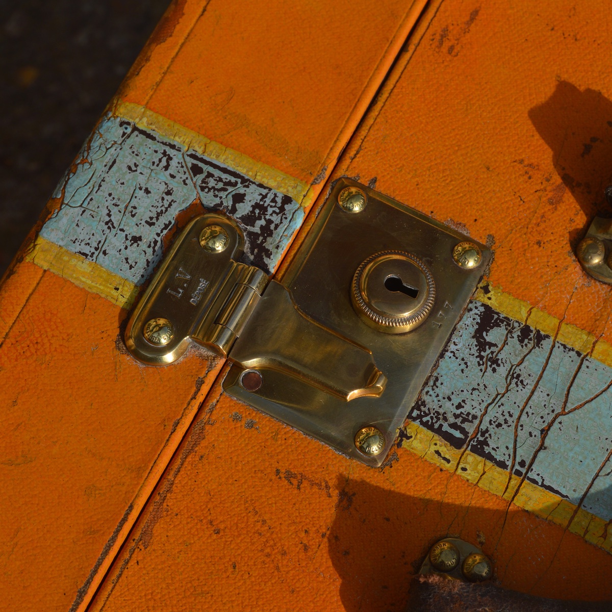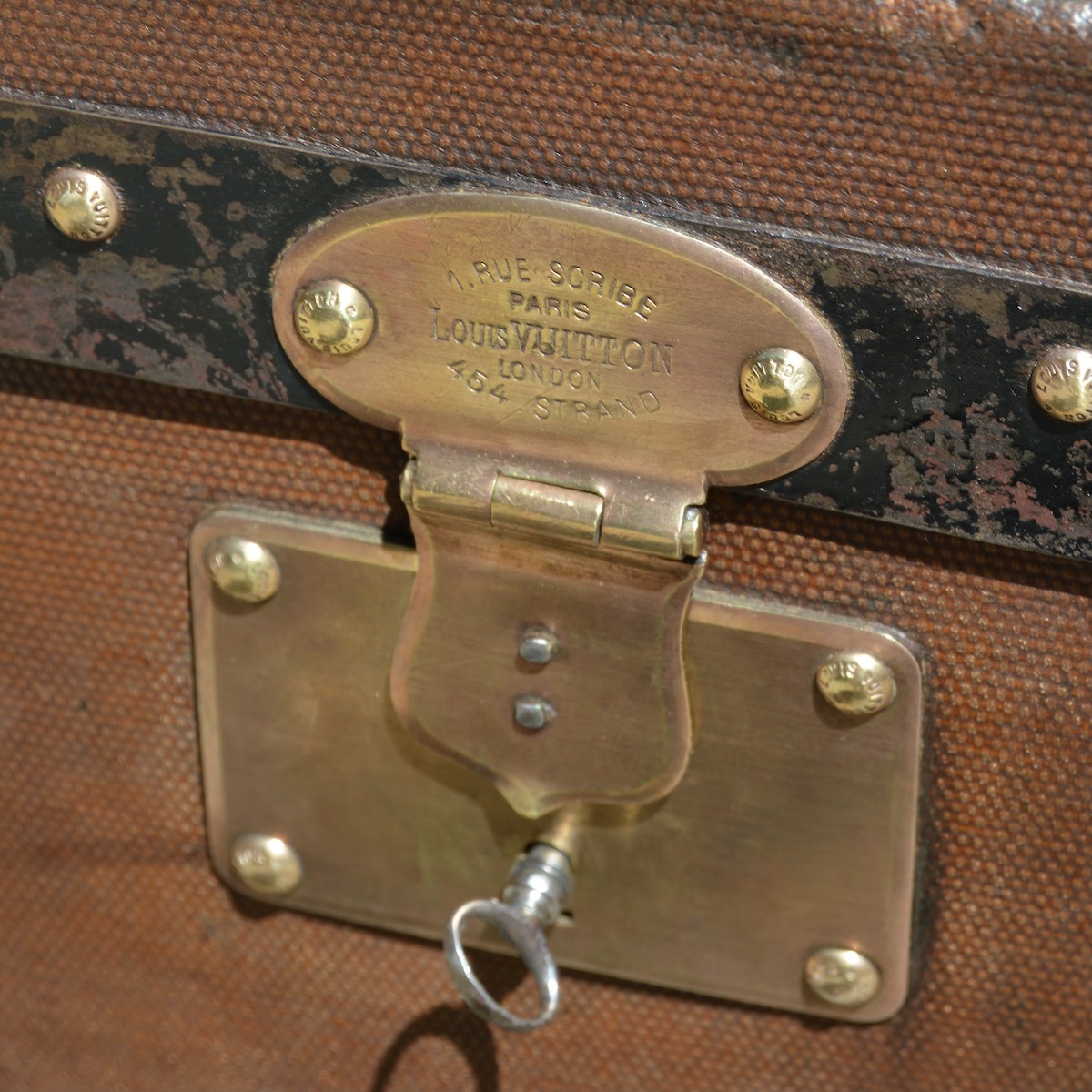 The locks used on trunks today are all shaped like the iconic 1905 V-lock. The only difference is that the Louis Vuitton addresses on the head of the lock were replaced by the brand logo in the 1940s.