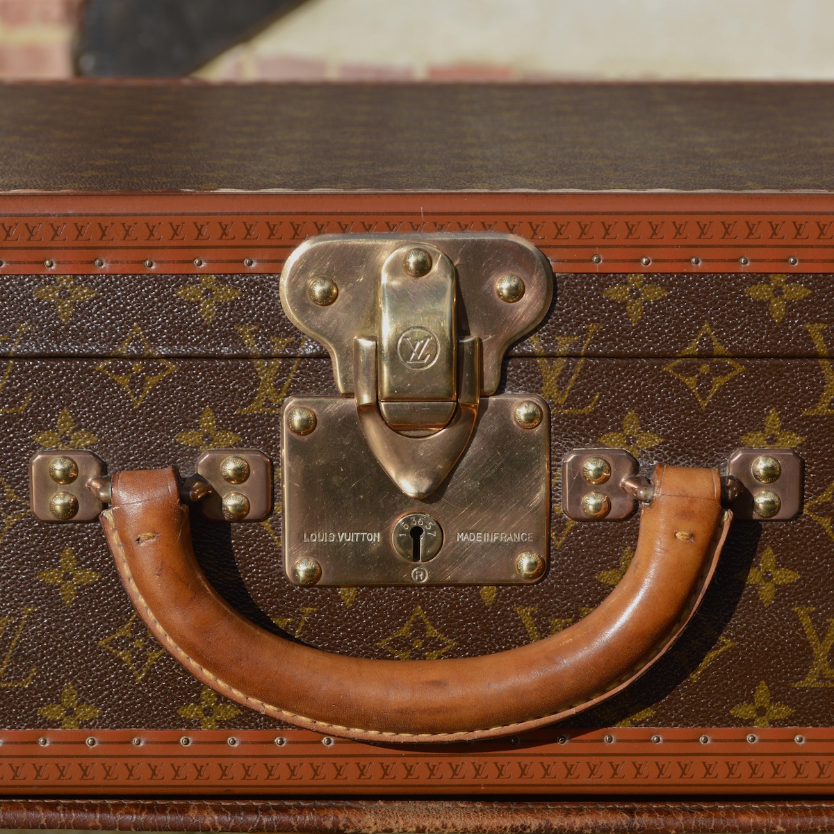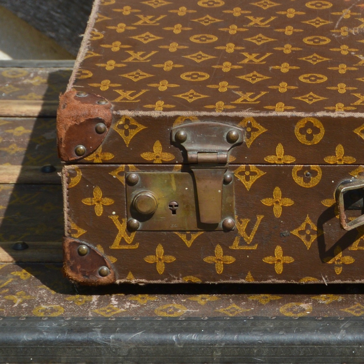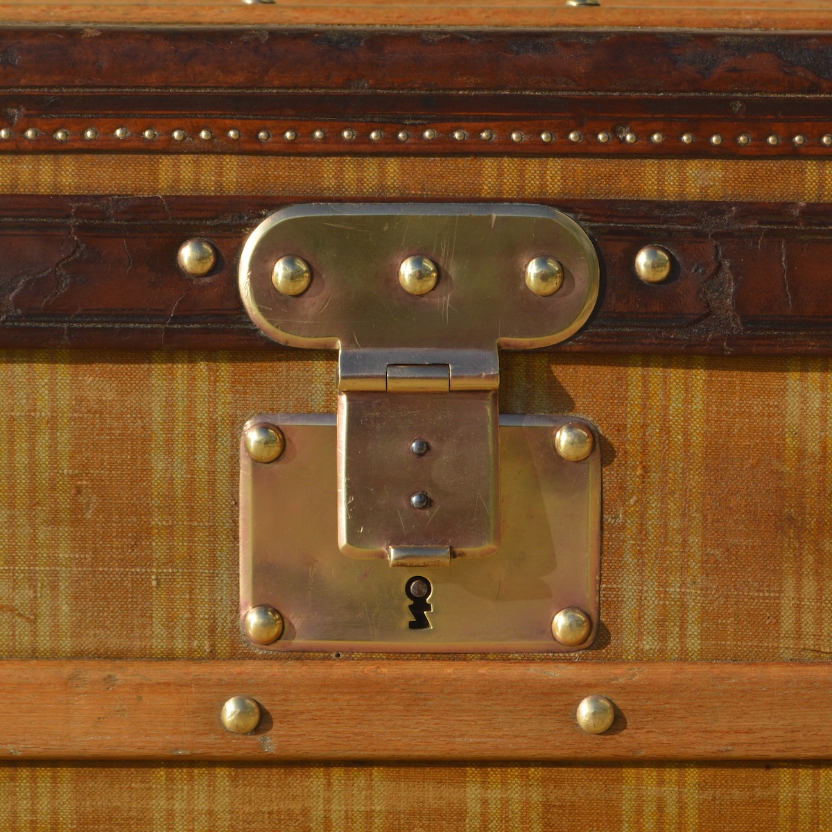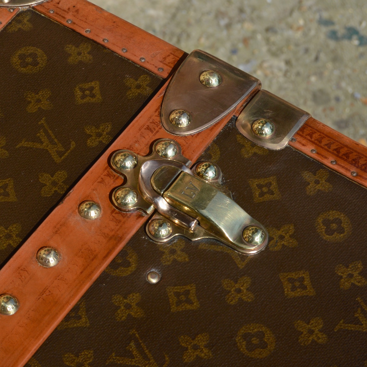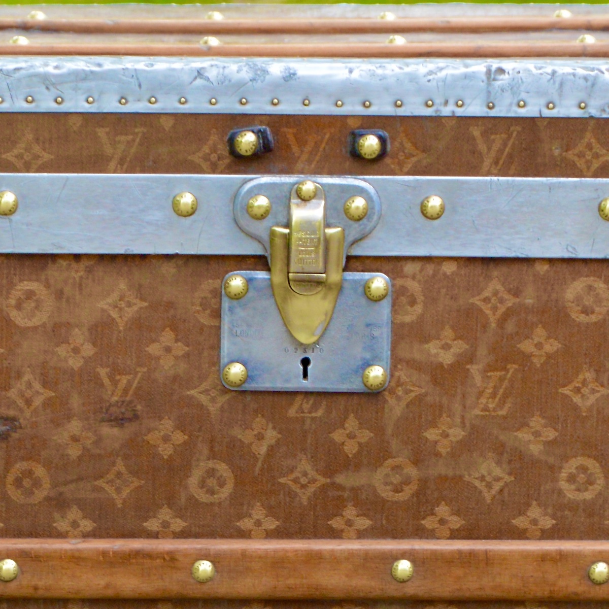 As a traditional lock is not possible on a trunk with a front opening, we find clasps in two "folded" parts or "slide" systems to ensure this closure. Whatever the specificity of the trunk, the Louis Vuitton brand name is always engraved in the lock material.