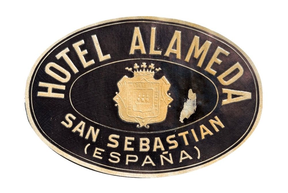 Authentique étiquette d’hôtel ancienne, collée sur les malles et bagages en 1900 par les grooms pour promouvoir un établissement.