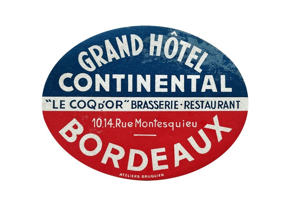 Authentique étiquette d’hôtel ancienne, collée sur les malles et bagages en 1900 par les grooms pour promouvoir un établissement.