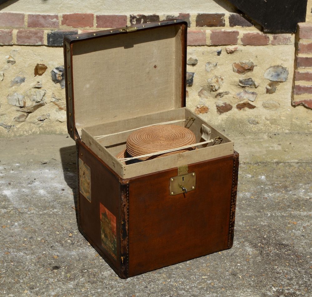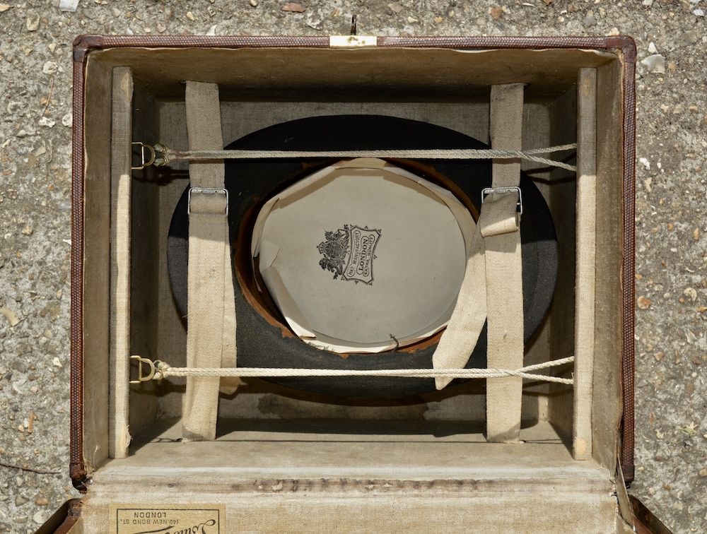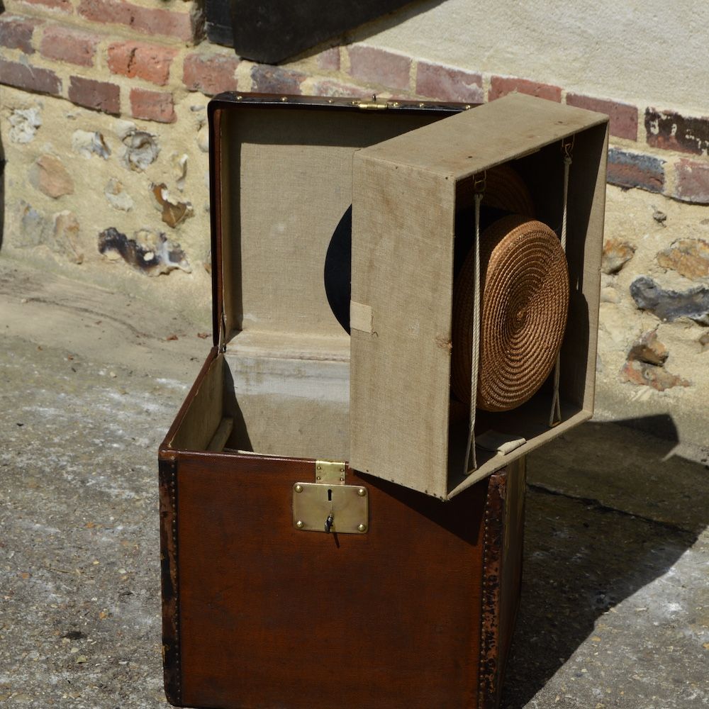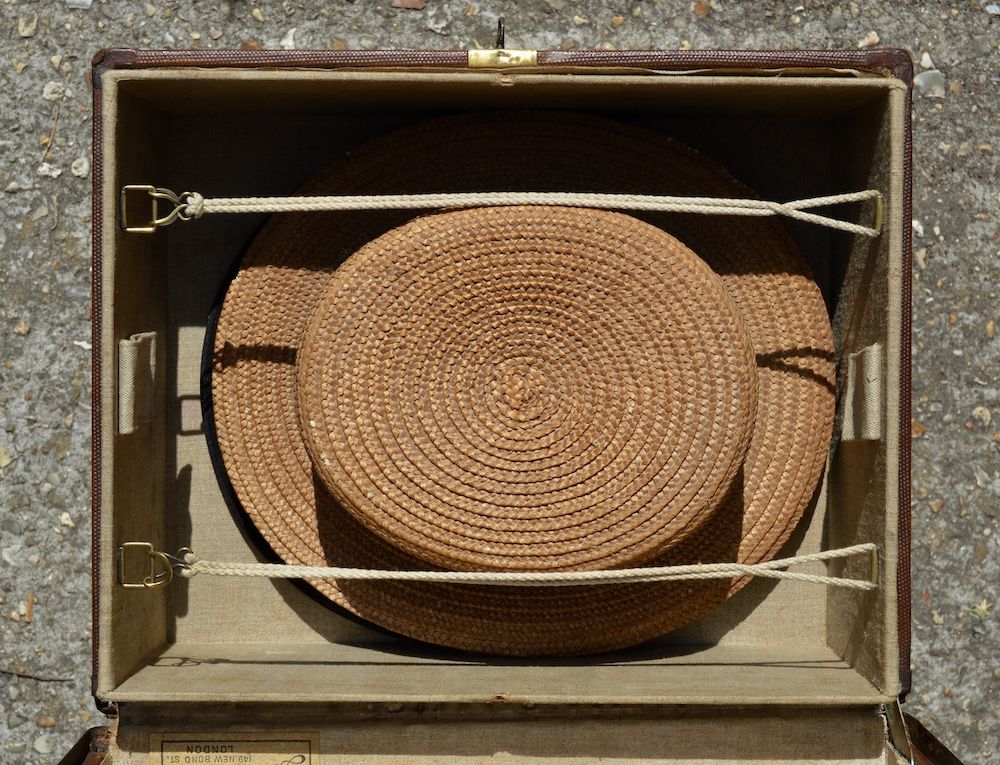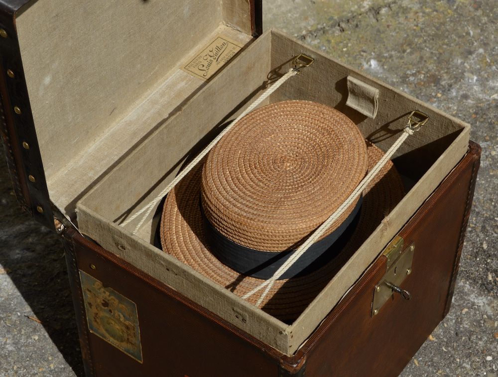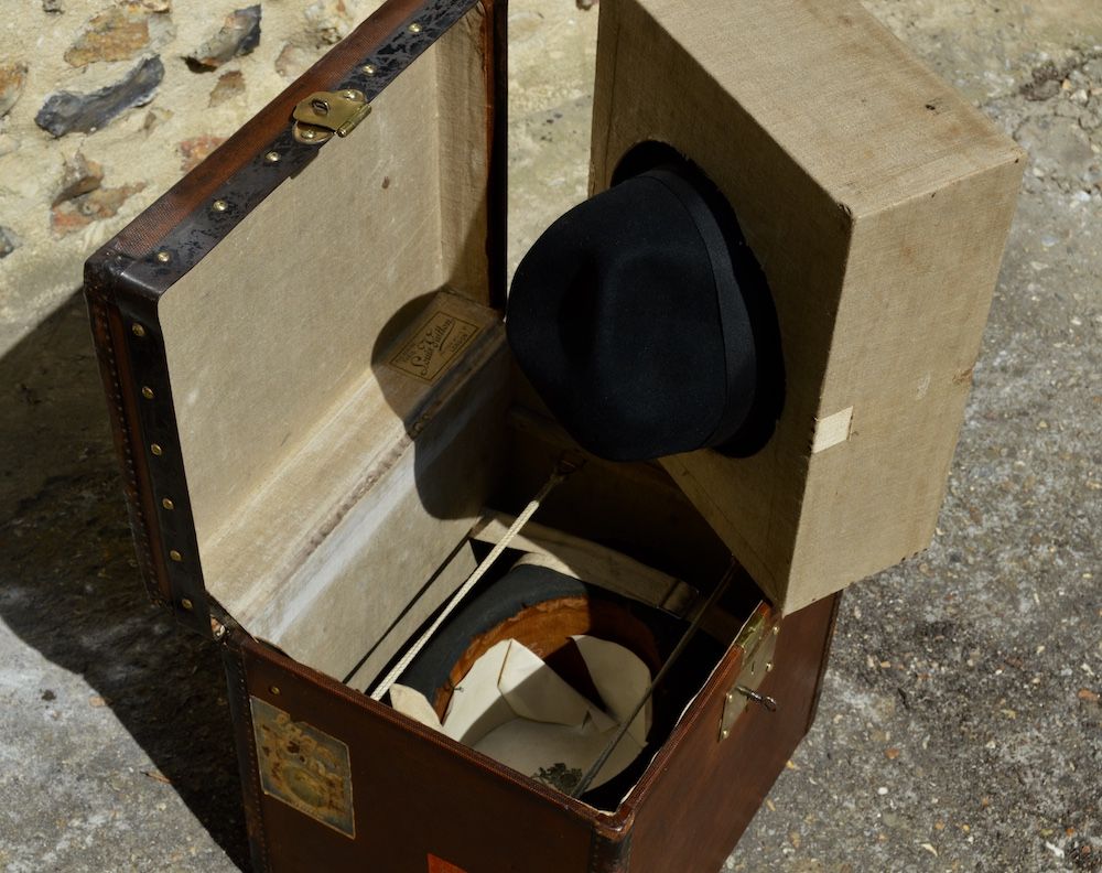 Une fois la malle fermée, les trois chapeaux sont rangés et maintenus en toute sécurité, quelle que soit la destination ou la nature du voyage.
