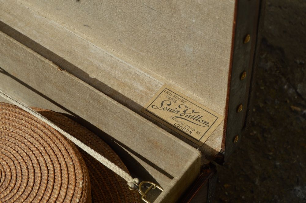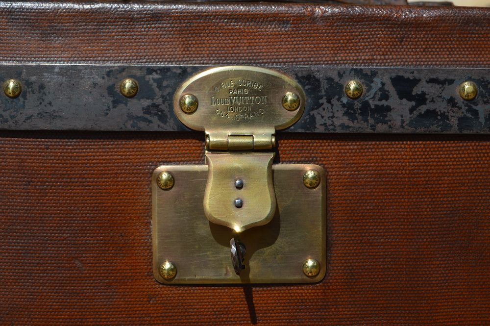 On retrouve à l'intérieur l'étiquette du fabricant Louis Vuitton, avec les adresses de l'époque. La malle est vendue avec une clé.