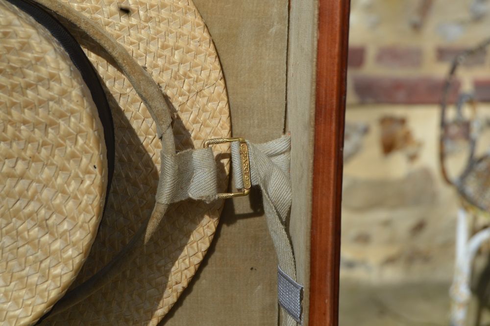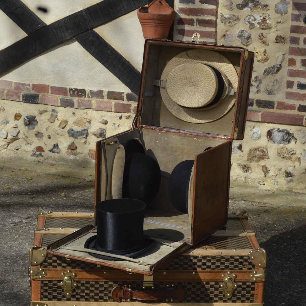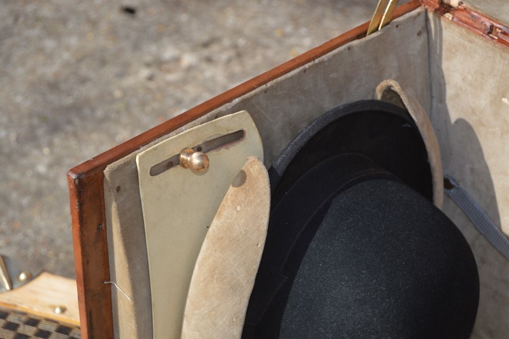 L'intérieur est aménagé d'un emplacement pour ranger un chapeau canotier en paille pour la campagne, un chapeau haut de forme repliant pour les soirées, ainsi que deux emplacements pour les chapeaux Melon de la vie quotidienne. C'était en 1900 le summum du luxe pour un gentleman, lui permettant de voyager avec tous ses chapeaux en parfaite sécurité.