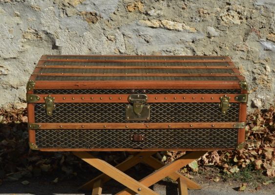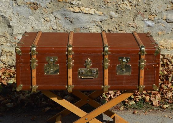 Ces malles ont disparu des catalogues de vente des maisons Louis Vuitton ou Goyard lorsque l'avion a supplanté les lignes de paquebots dans l'immédiate après-guerre. A défaut de voyager aujourd'hui avec ces malles cabine, leur format est idéal pour faire une table basse. Souvent protégée d'un verre, c'est l'assurance d'avoir une table peu commune, chargée d'histoire et symbole d'un art de vivre au début du XXeme siècle.
