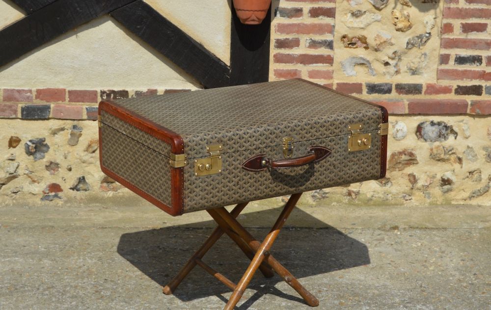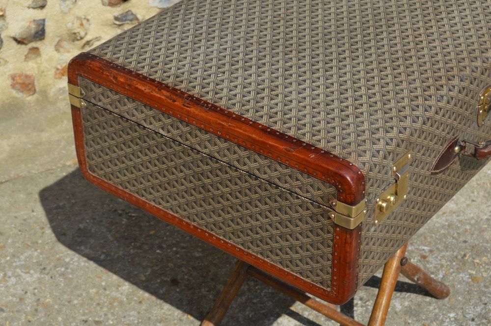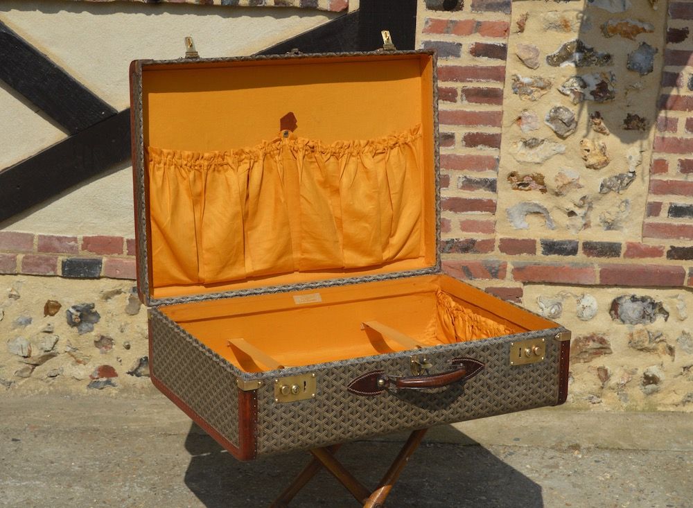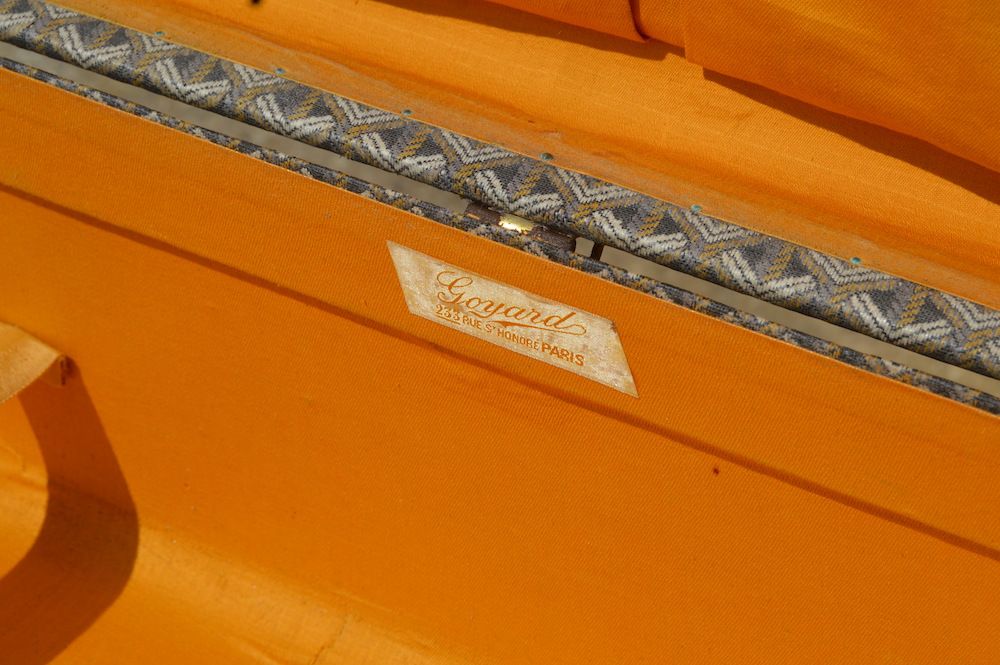 L'intérieur de la valise est protégé par une toile de satin jaune safran, couleur aujourd'hui emblématique de la maison Goyard.