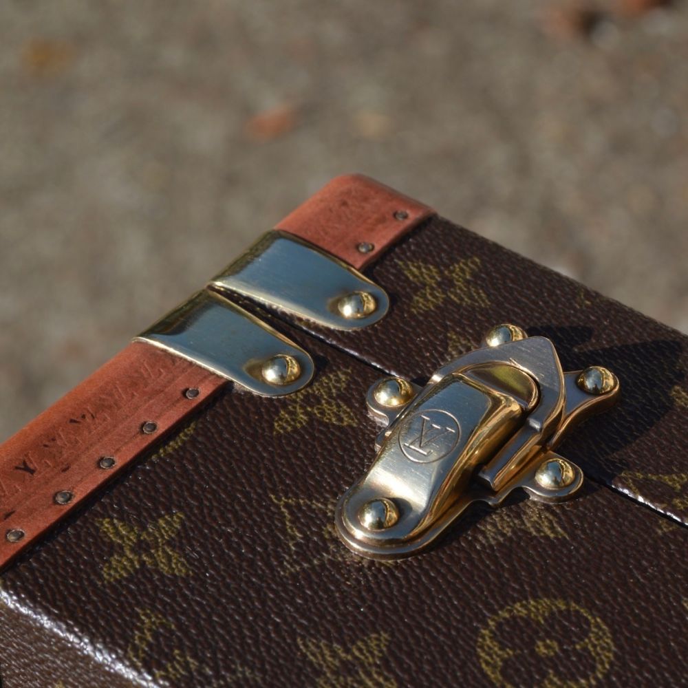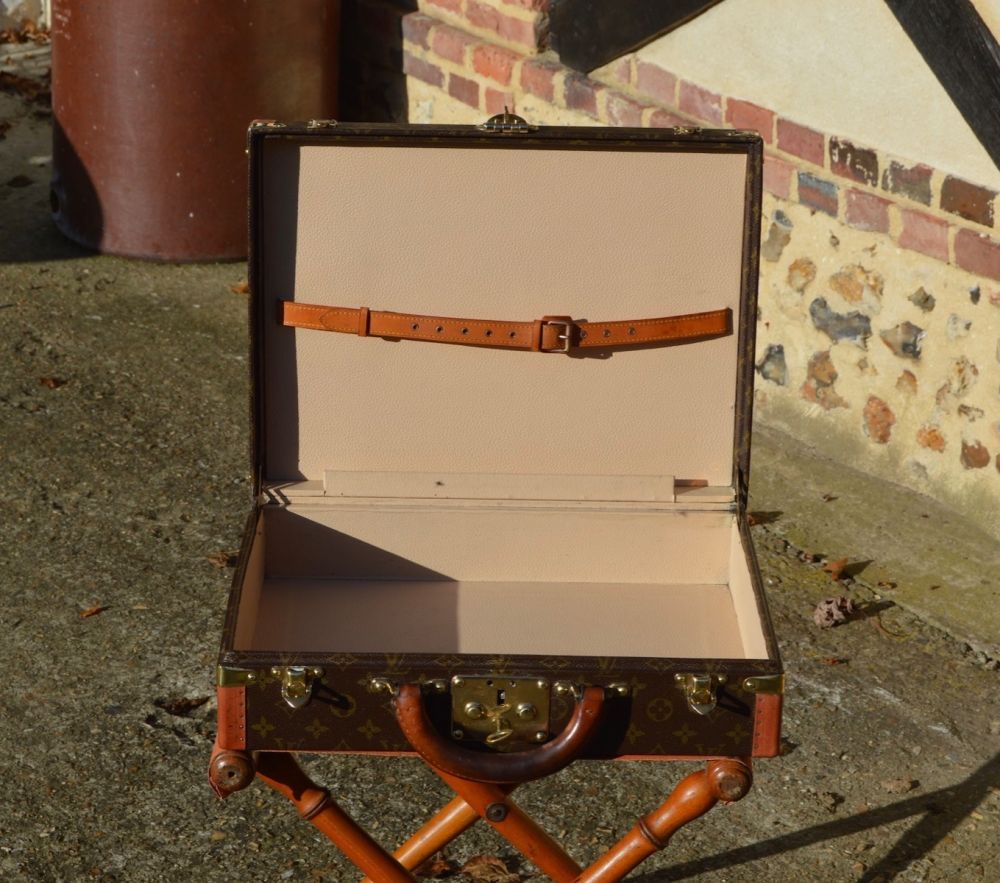 Bon état : La valise est globalement en bon état, avec quelques marques sur la lozine et sur la vuittonite intérieure.